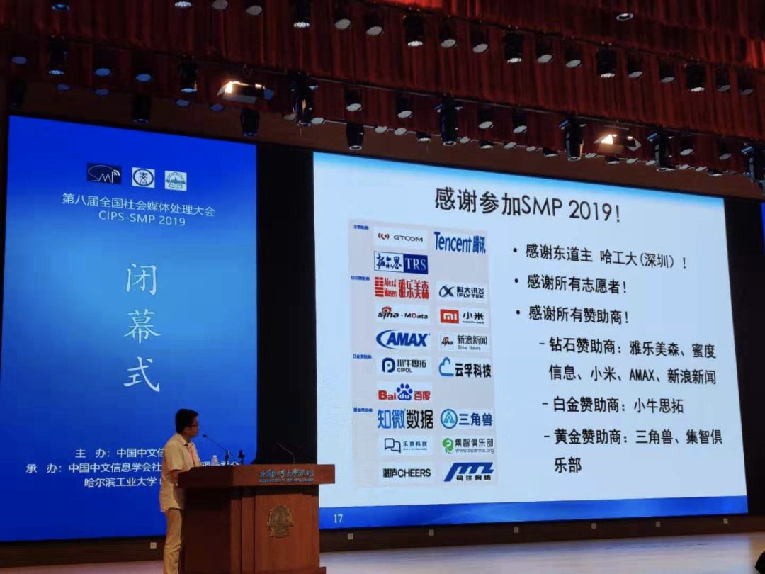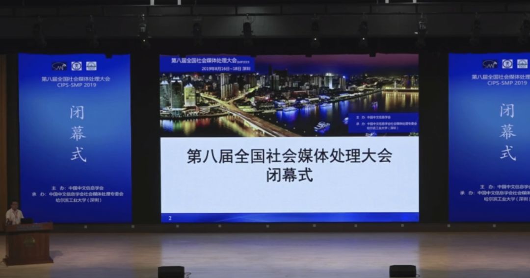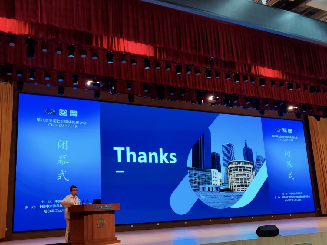 8月18日下午,大会在主会场举办了闭幕式,社会媒体处理专业委员会秘书长、清华大学副教授刘知远主持闭幕式,总结了SMP2019的诸多进展和成果: