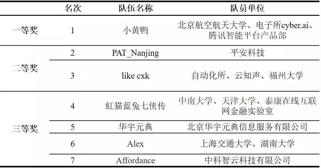 "中国法研杯"中文法律阅读理解比赛获奖情况: