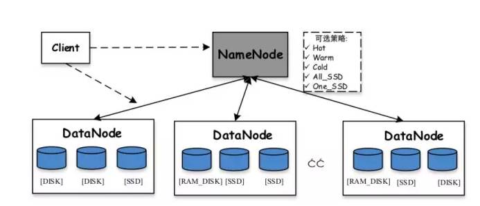 DISK:磁盘介质,这是HDFS最早支持的存储介质