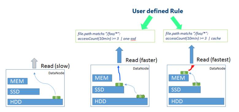 前面介绍的无论HDFS异构存储还是纠删码技术,前提都是需要用户对特定的数据指定存储的行为,就是说用户需要知道哪些数据是热点数据,哪些是冷数据。那有没有一种方法可以自动对存储进行优化呢?