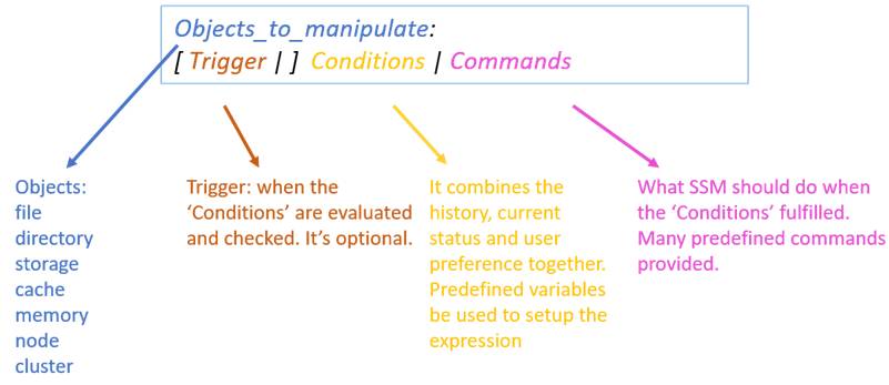 file.path matchs ”/foo/*”: accessCount(10min) >= 3 | one-ssd