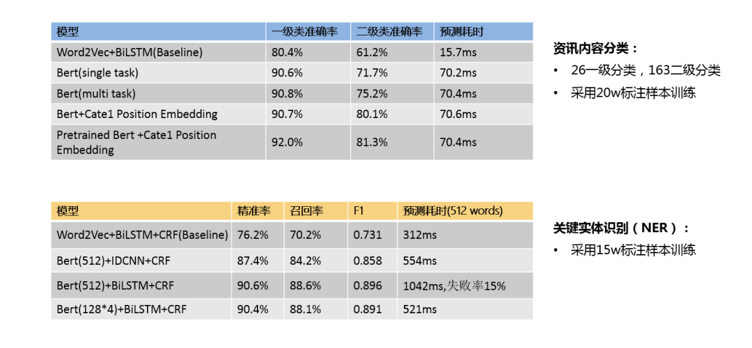 接下来看一下内容分类和实体识别迭代优化的效果数据。