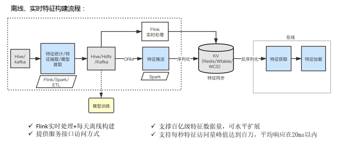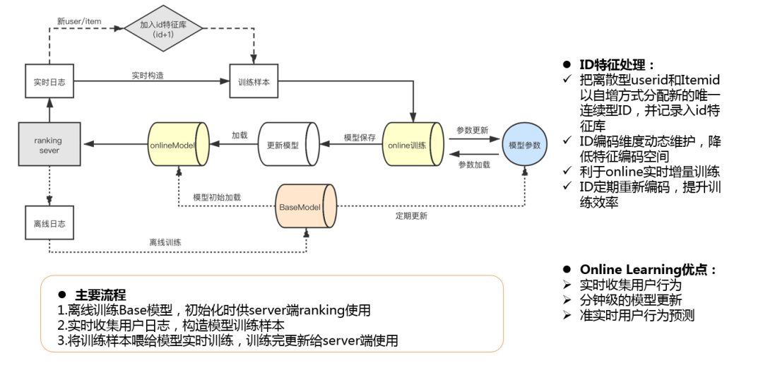 基于业务需要和优化需求,我们19年底上线了online Learning,针对用户实时行为进行在线学习,并实时更新模型,实时预测用户偏好。大致处理流程:
