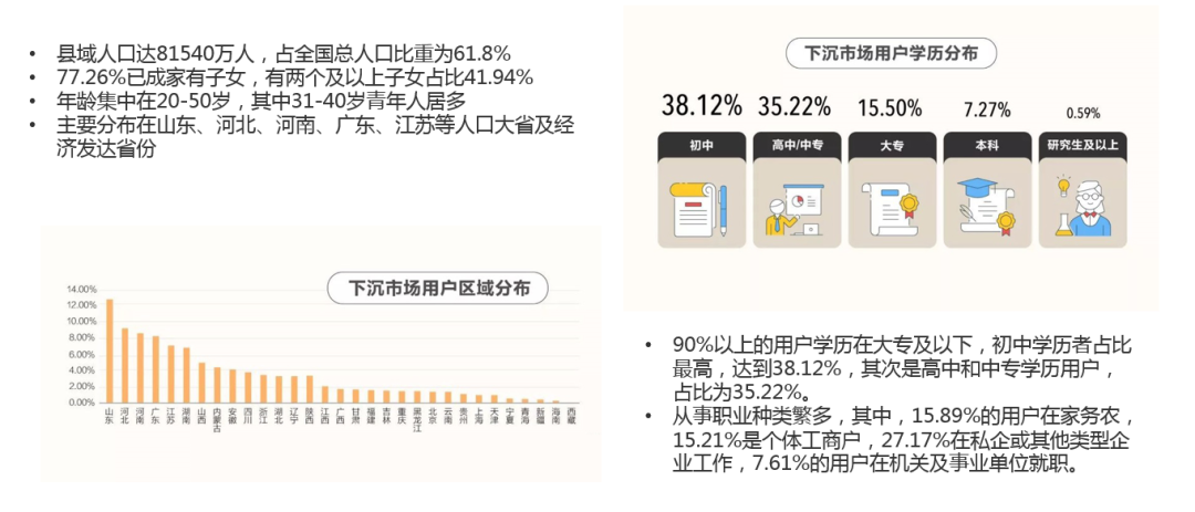 这里引用同镇去年11月份发布的一份关于下沉市场的调研数据,帮助大家对下沉市场有一个简单的直观认识: