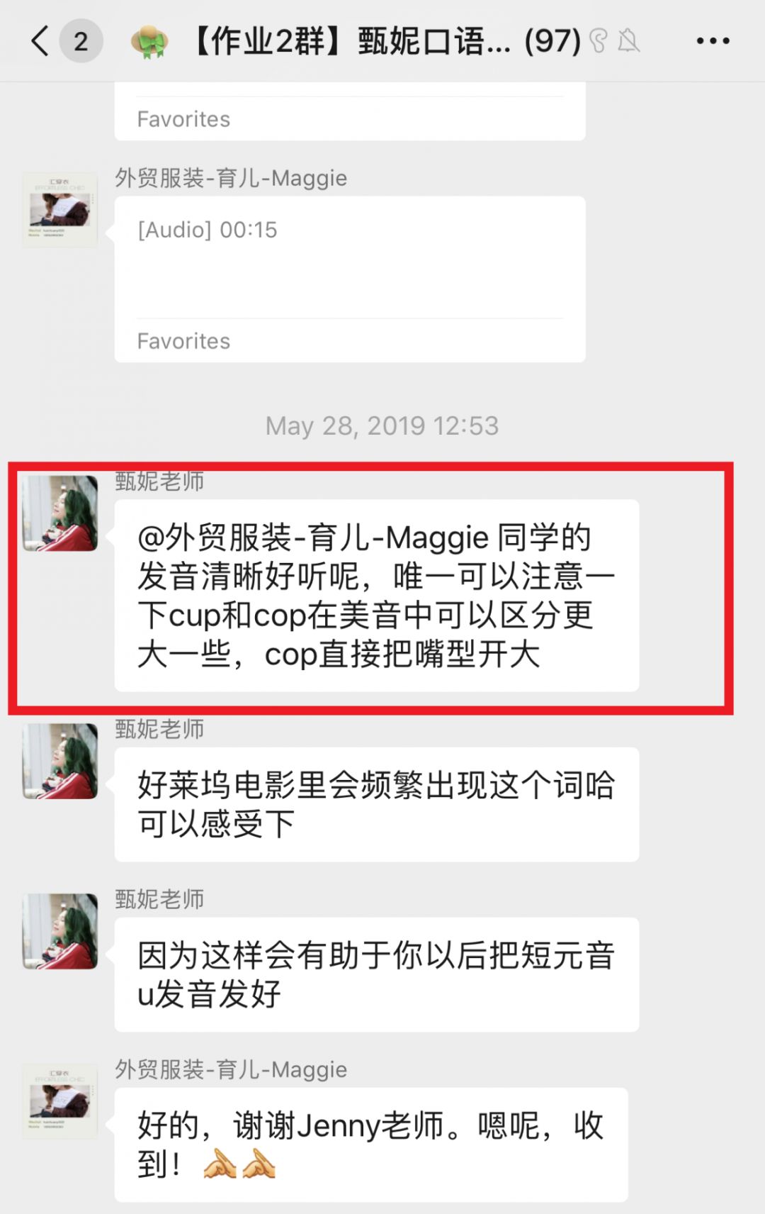 还会有老师对你提交的口语作业进行细致的一对一纠音,带你免费享受口语一对一私教服务。