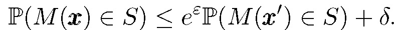 在联邦学习问题中,即使只在客户端和中央服务器之间传输模型的更新信息而不传输客户端本地数据,依然存在暴露用户隐私的风险。本文提出了一种基于本地私有算法的隐私保护方法。给定客户端保持私有状态的数据 x∈X,随机机制 M:X→Z 是ε-本地差异性私有的,则对于所有 x,x『∈X 以及集合 S,我们有: