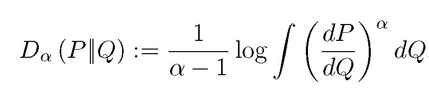 差异性隐私的其他变体要求平均似然比接近 1,包括集中式和 Renyi 差异隐私权。分布 P 和 Q 之间的 Renyi alpha-散度为: