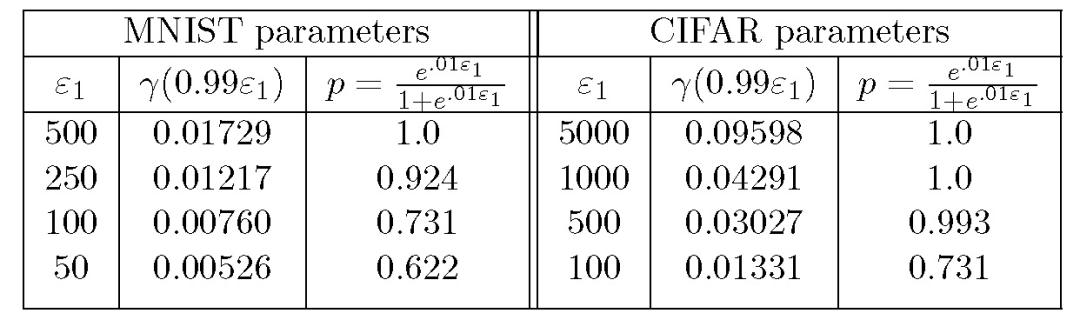 实验参数:对于给定的隐私等级 epsilon,实验参数如下