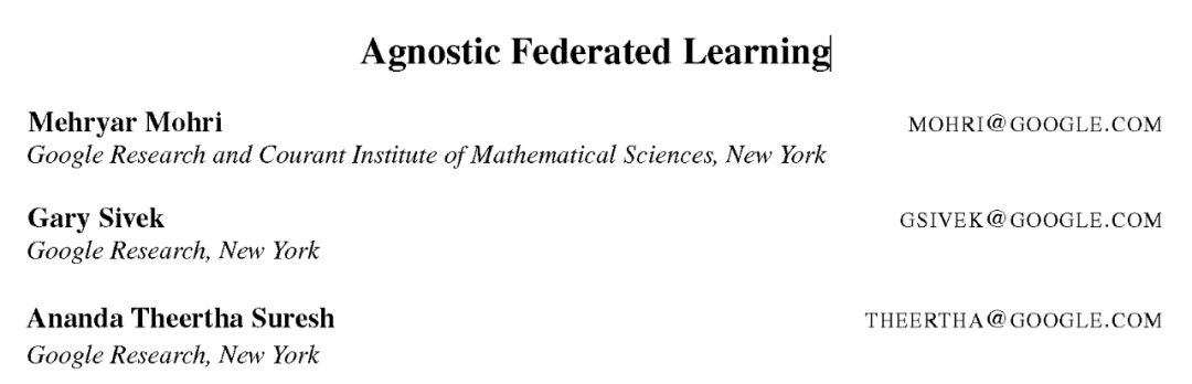 https://arxiv.org/abs/1902.00146v1,Agnostic Federated Learning,解决之前联邦学习机制中会对某些客户端任务发生倾斜的问题;