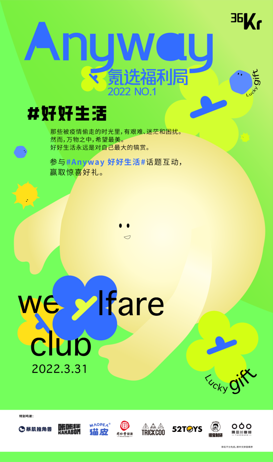 每一个好好生活的故事背后,都是一个普通人对生活的执着,他们热爱世界,热爱万物,热爱众生。我们从话题参与者中随机挑选,送出666份诚意满满的Anyway「氪选福利局」的惊喜盲盒。