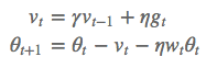 动量和重量衰减(SGDW)更新的SGD如下所示:
