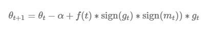 特别的,他们发现了两个更新方程,即PowerSign和AddSign。 PowerSign的更新公式如下: