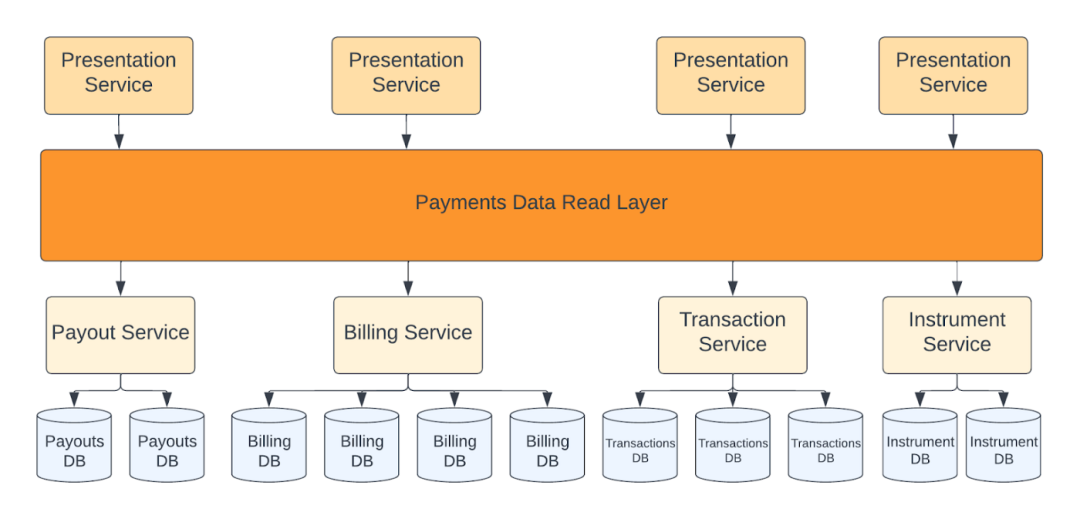呈现服务只与读取层打交道,不与个体支付服务通信