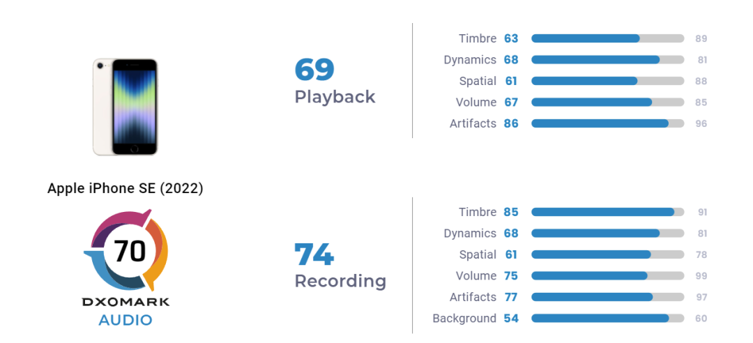 iPhone SE 3 DxOMark 音频得分公布