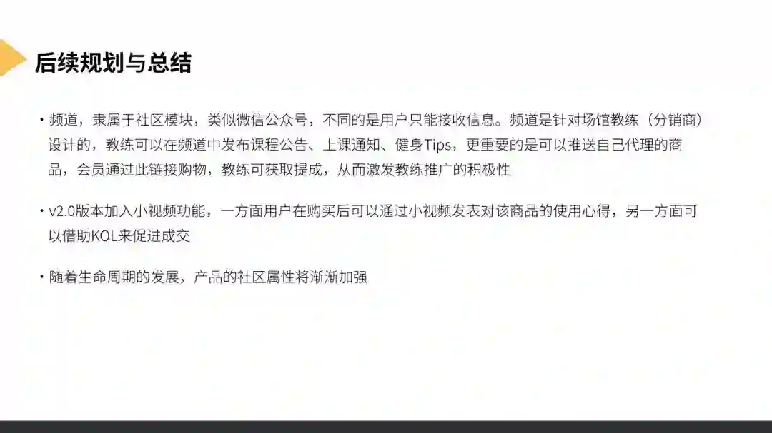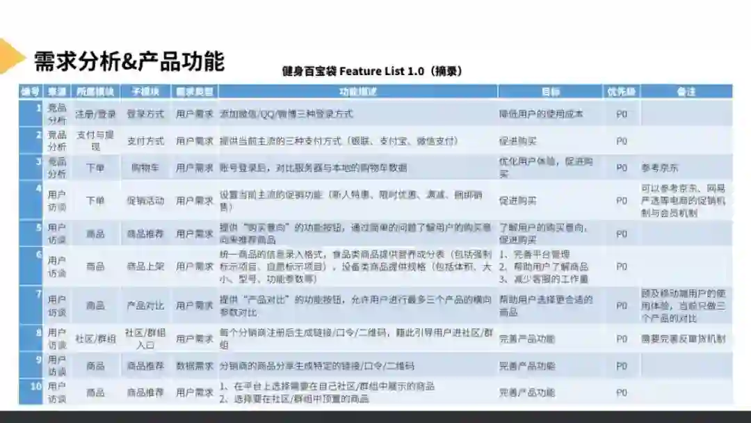 Arsene同学通过10周时间,不仅习得了产品经理的基础知识和技能,同时围绕着产品从0到1的过程:市场分析、竞品分析、用户分析、需求分析、功能设计、原型设计、版本规划等知识模块,产出了一份很优秀的毕业答辩PPT作为自己的求职作品。