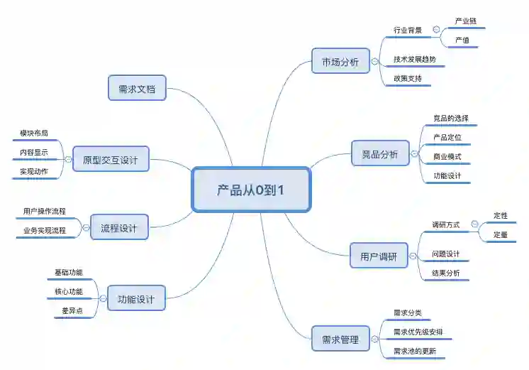 我围绕着产品从0到1的过程进行学习,包括以下几个方面:
