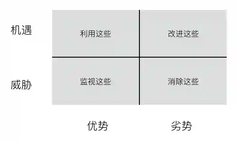 在做产品的前期准备时会用到一些分析工具,有的工具比较常用,也能运用到日常生活中,比如SWOT分析,这是当前最常用的分析工具,目的是为了找出自身产品在竞争中应采取什么策略。