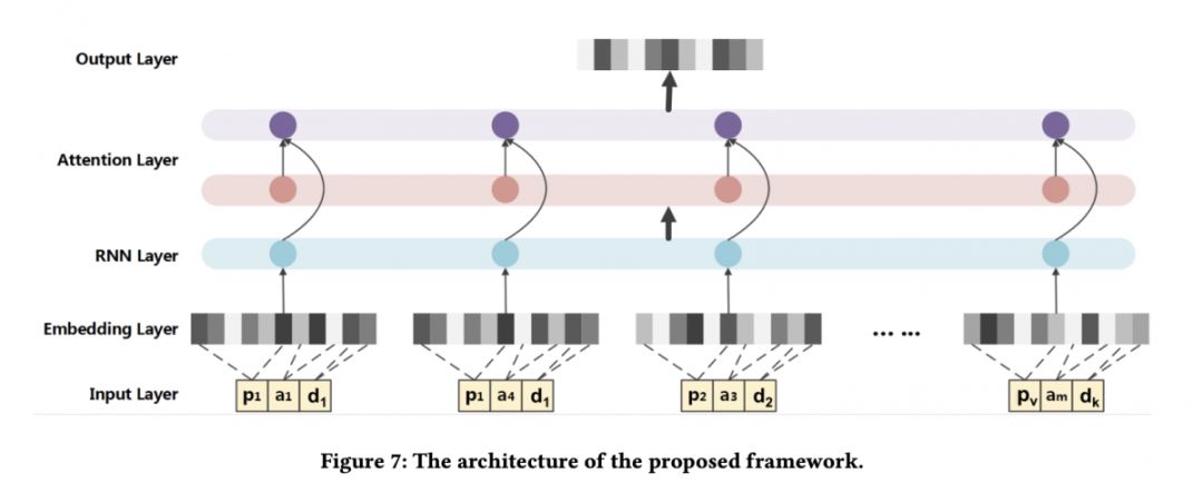 本文从微观行为的角度对推荐系统进行改进,作者将用户的固有数据视为用户和商品之间的宏观交互,并保留了宏观交互的顺序信息,同时,每个宏观交互都包含一系列微观行为。具体来说,论文提出了一个全新模型——RIB,它由输入层、Embedding 层(解决数据稀疏和数据高维的问题)、RNN 层(建模时序信息)、Attention 层(捕捉各种微观行为影响)和输出层组成。