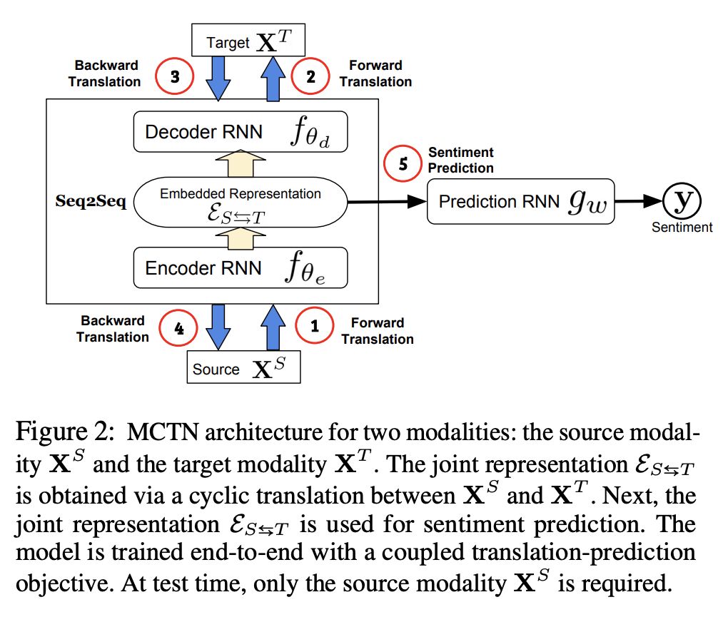随着机器翻译中 Seq2Seq 模型的成功,有机会探索在测试时可能不需要所有输入模态的联合表示的新方法。论文提出了一种通过在模态之间进行转换来学习鲁棒联合表示的方法。论文的方法基于 Key Insight,即从源到目标模态的转换提供了仅使用源模态作为输入来学习联合表示的方法。