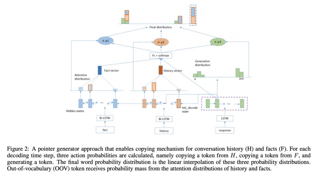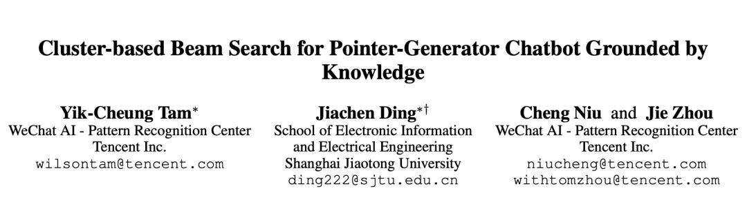 本文是微信 AI 团队和上海交大发表于 AAAI 2019 的工作,论文关注的任务是基于背景知识的对话生成,通过指针生成机制和注意力机制,基于对话历史和背景知识生成更有意义的回复。作者提出了一个泛化的指针生成机制,能同时从对话历史和外部知识中复制实体。此外,作者还提出了一种 Cluster-based Beam Search 算法,能在解码时动态地将相似语义的序列分组归类,避免生成通用回复。