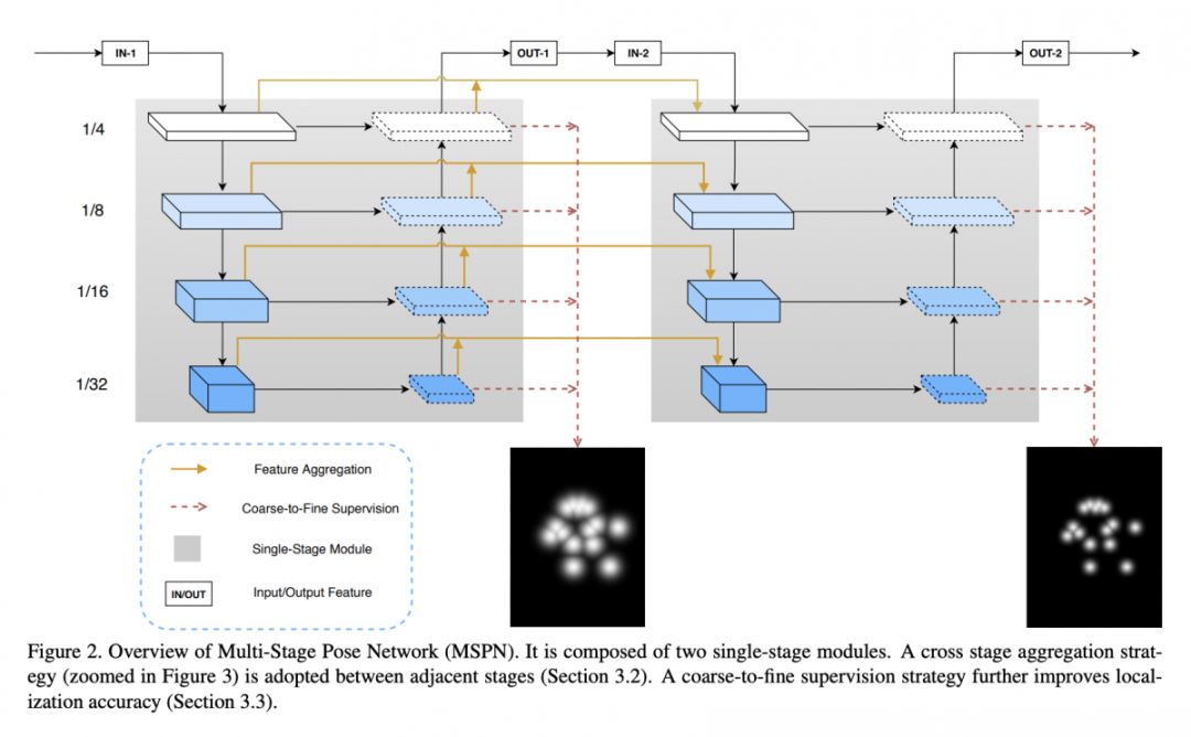 本文来自旷视科技,夺得 COCO Keypoints 2018 比赛冠军。本文旨在设计出一个好的 multi-stage 的人体姿态检测方法,随着网络 stage 数目增加,模型的预测能力能够逐步提高的网络。而不会像 Hourglass 及其它网络一样,增加 stage 数目并不会显著提高模型的预测能力。作者采用了 top-down 的解决思路,将重心放在对单人关节点的检测上。针对 multi-stage 算法存在的问题,作者分别进行了不同的探索。