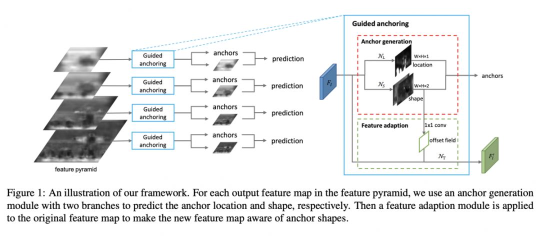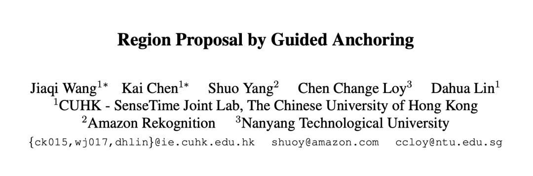 本文来自香港中文大学、商汤科技、Amazon 和南洋理工,论文提出了一种新的 anchor 生成方法——Guided Anchoring,即通过图像特征来指导 anchor 的生成。 通过预测 anchor 的位置和形状,来生成稀疏而且形状任意的 anchor,并且设计了 Feature Adaption 模块来修正特征图,使之与 anchor 形状更加匹配。