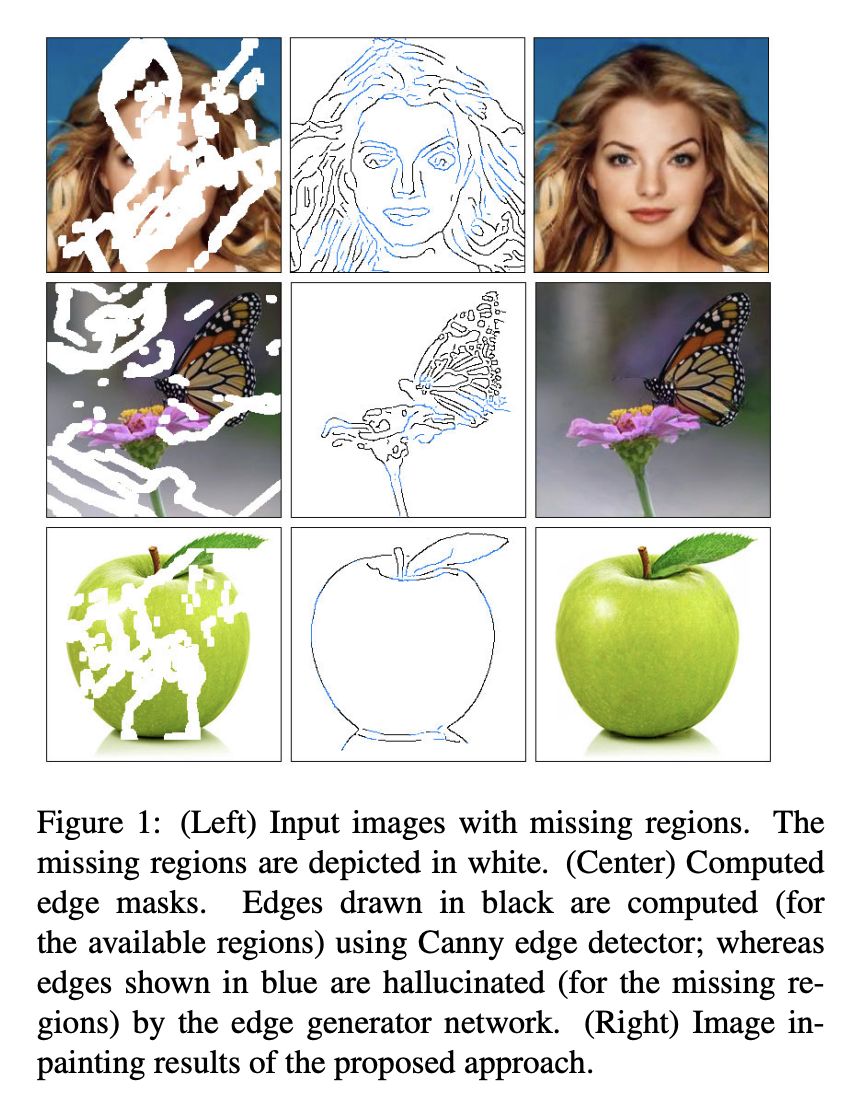 本文来自安大略理工大学,论文提出了一种全新图像修复方法,能重构出图像的精细细节。具体而言,作者提出了一种两阶段的对抗模型 EdgeConnect,该模型由一个边生成器和一个图像补全网络组成。边生成器将图像确实区域的边生成,而后图像补全网络以边为先验填补图像。