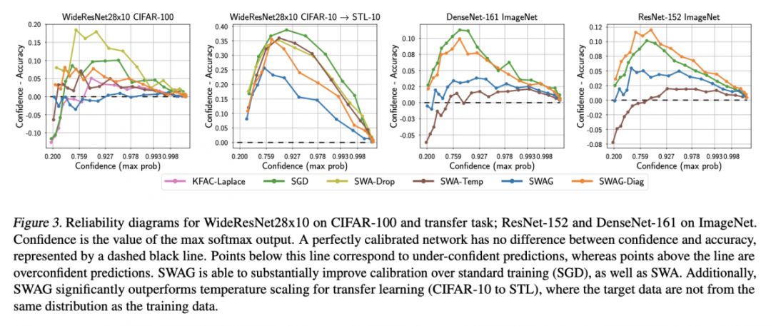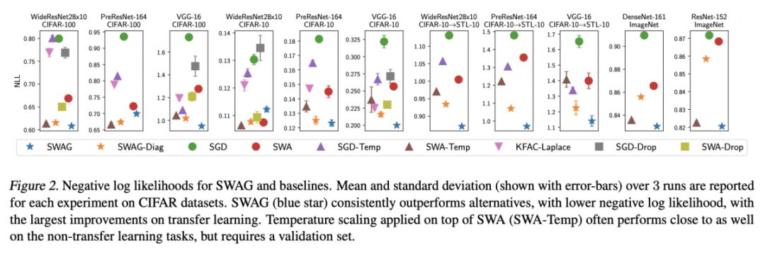 本文属于第二种思路,基于一种叫做 Stochastic Weight Averaging (SWA)的方法,即将 T 个 Epoch 中的参数作为统计数据,求平均作为参数后验分布的均值,方差作为分布的方差(仅考虑后验分布为高斯的情况,也是大多数方法的假设。)。思路比较简单,相对传统的贝叶斯推断方法,计算效率非常高。这类方法中另一个典型代表是 Oxford 的 Yarin Gal 提出的 MC Dropout。
