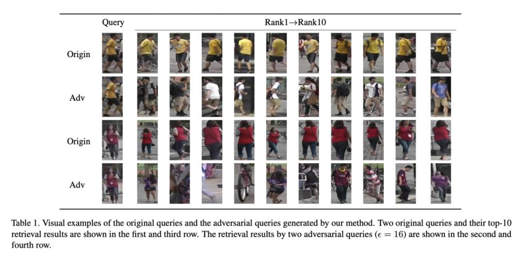 对抗样本存在于很多任务中,但如何在不同任务中构造对抗样本是一个问题。对于 reID 来说,攻击的方式与正常的分类不同。因为 reID 在测试的时候的类别与训练时类别不同,没有相同的类别(也就是测试的人和训练的人不是同一批,Open-set)。那么在构造对抗样本时,传统的降低预测概率回传梯度方法就受限。在实验中也有相应结果。文章提出了一种新的方法来攻击图像检索(reID 是图像检索的一个子问题)。