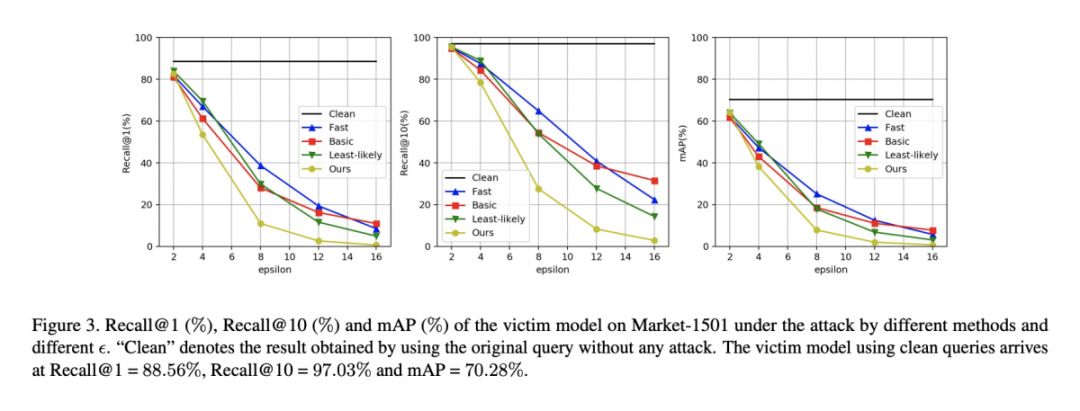 现在行人重识别高准确率模型真的鲁棒么?是不是像传统分类问题一样容易被攻击呢?本文提出的方法,将目前行人重识别上较高的 baseline Recall@1=88.56%, mAP=70.28% (layumi/Person_reID_baseline_pytorch) 降到 Recall@1=0.68%, mAP=0.72%。
