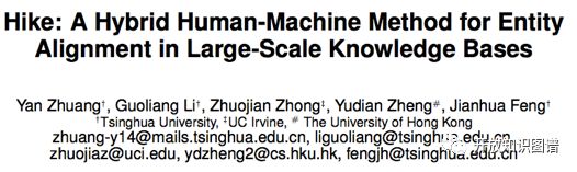Zhuang Y,Li G, Zhong Z, et al. Hike: A Hybrid Human-Machine Method for Entity Alignmentin Large-Scale Knowledge Bases[C]// ACM, 2017:1917-1926. ( CIKM 2017 )