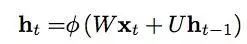 权重输入与隐藏状态之和用函数 φ 进行挤压-可能是逻辑S形函数(sigmoid函数)或双曲正切函数,视具体情况而定-这是将很大或很小的值压缩至一个逻辑空间内的标准工具,同时也用于产生反向传播所能接受的梯度。