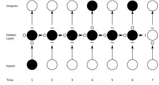 循环网络在寻找最终输出与许多时间步以前的事件之间的联系时遇到了重大障碍,因为很难判断应当为远距离的输入赋予多少重要性。(这些输入就像曾曾…曾祖父母一样,不断向前追溯时会迅速增多,而留下的印象通常很模糊。)原因之一是, 神经网络中流动的信息会经过许多级的乘法运算。