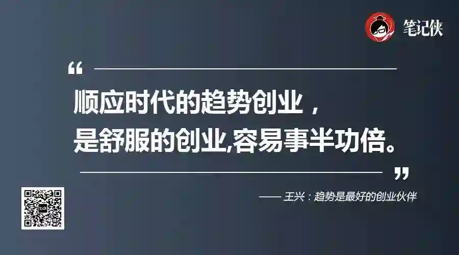 王兴说,创业顺应这个时代是最舒服的,顺势而为。