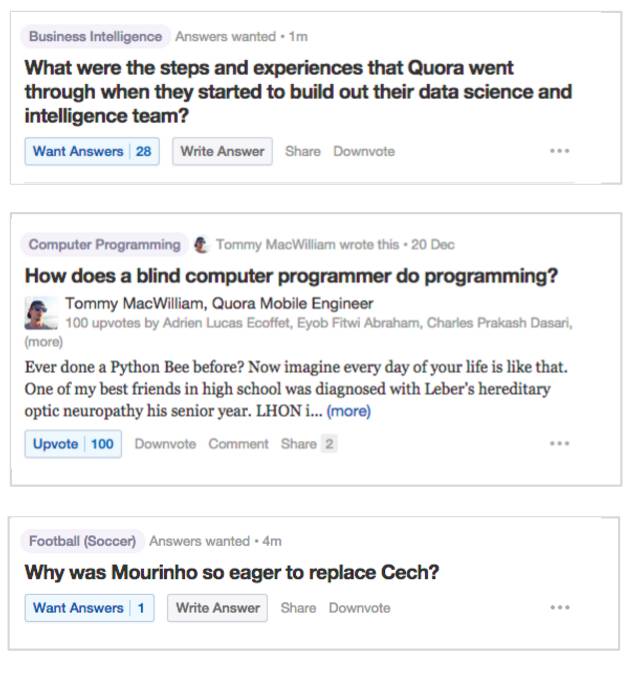 比如Quora的feed推荐给出的“被你关注的人投票”的理由: