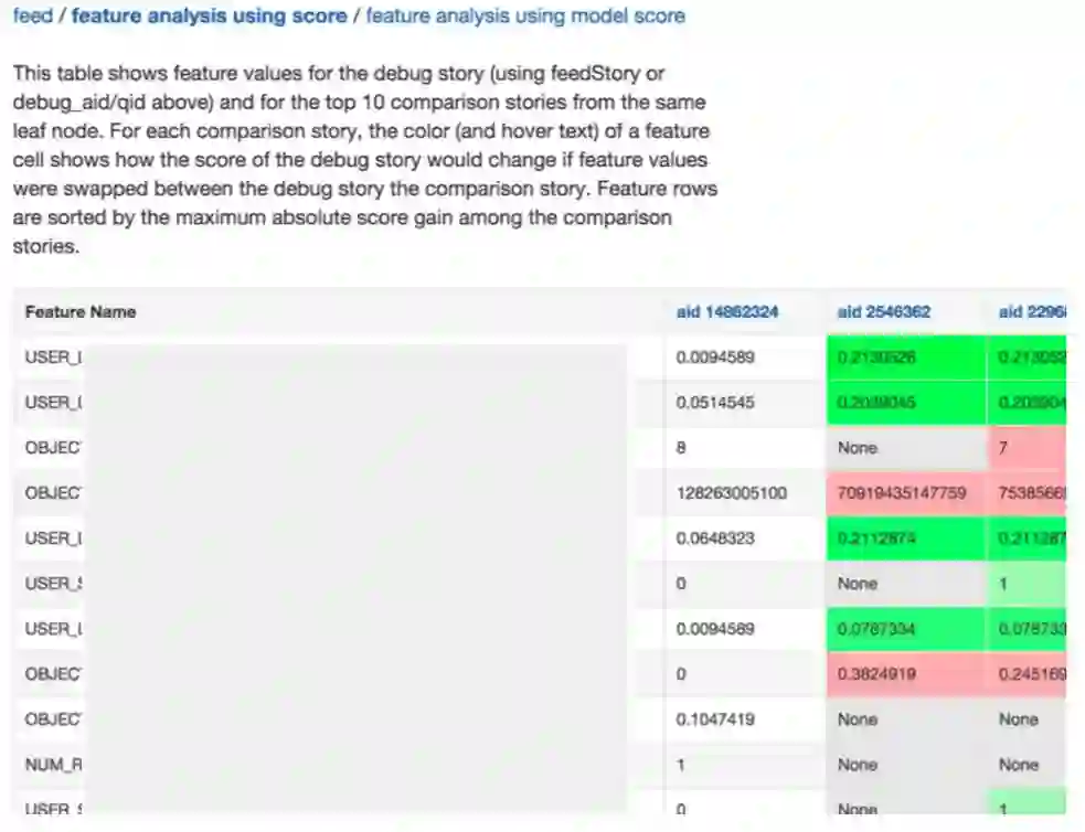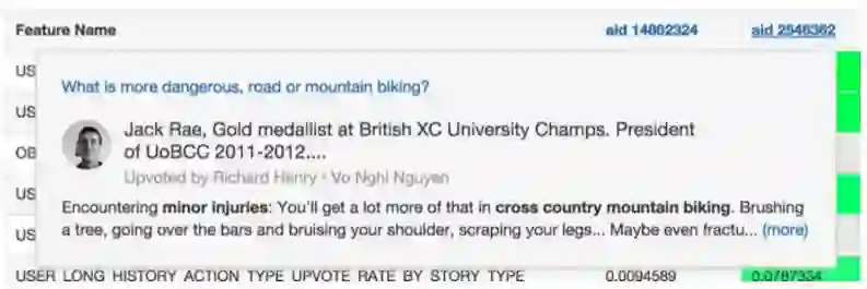 Xavier 提到在Quora内部就有个工具,可以看到某个人的首页feed的每一个内容的分数,以及每个分数计算所依赖的特征,这样就很清楚知道为什么你“看到/没看到”某个人的回答或问题。