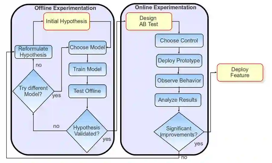 第二个就是离线评价(通常是技术性或者学术性的,比如准确率)和在线产品指标(通常是商业性的,比如留存率)之间通常是存在鸿沟的。模型的离线评价效果可能很好,但是在线去测试,产品指标可能表现不好,可以离线的时候换一个与直接产品指标更相关的评价指标。