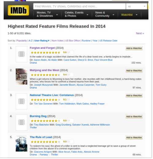 举个例子,IMDB的电影排名,对比一下用票房排名和用评分排名,票房其实是一种隐式反馈的量化,表示“看过”,而评分则是显式反馈。
