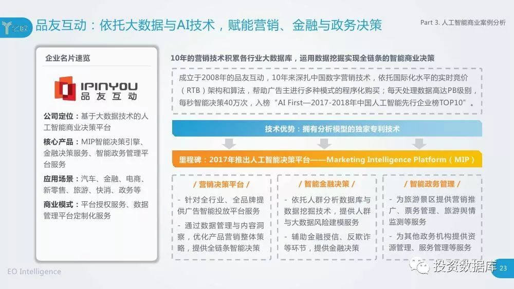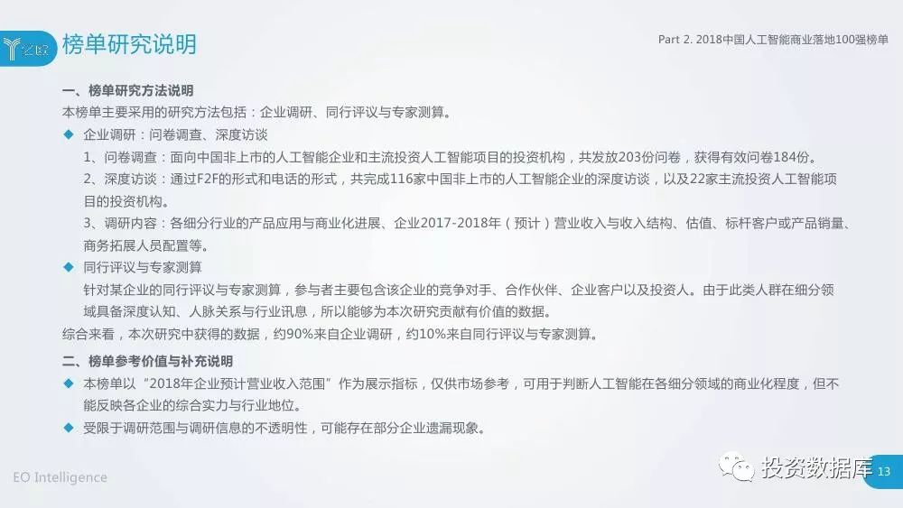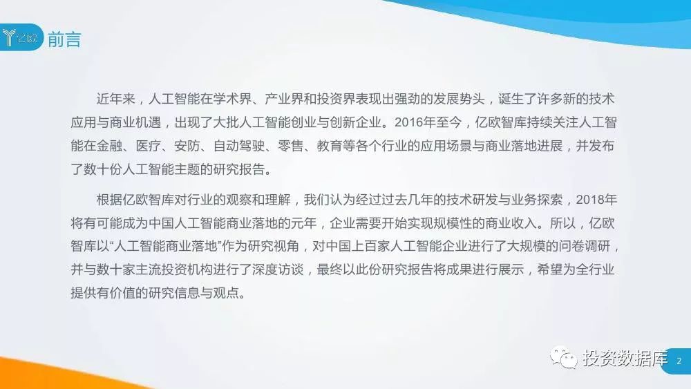 亿欧智库以“人工智能商业落地”作为研究视角,对中国上百家人工智能企业进行了大规模的问卷调研,并与数十家主流投资机构进行了深度访谈,最终以研究报告、企业榜单的形式,将成果进行展示,希望为全行业提供有价值的研究信息与观点。