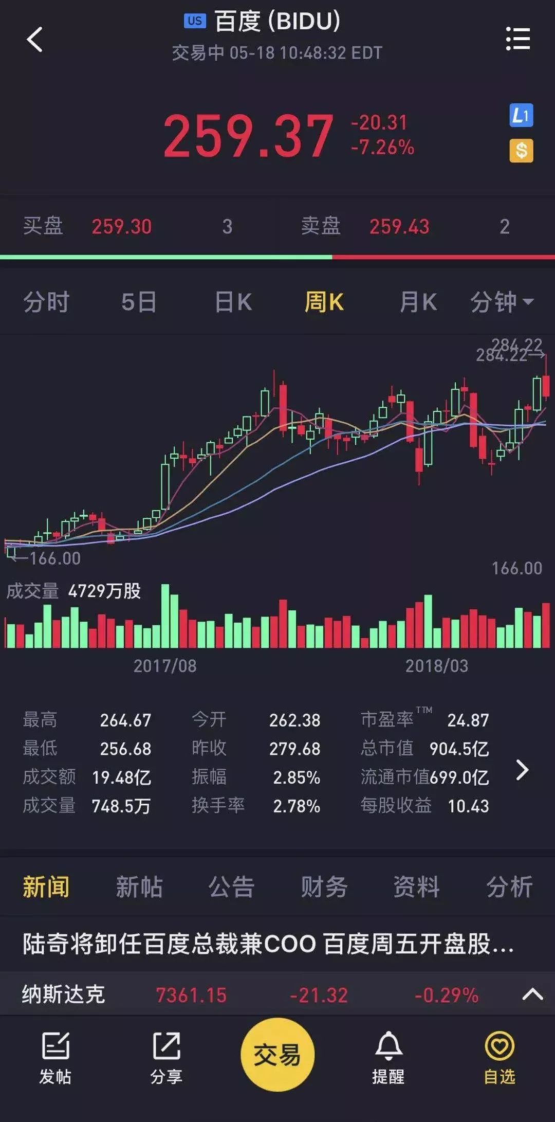 消息宣布后,截至发稿,百度股价开盘后一度大跌8.22%,市值蒸发近80亿美元。