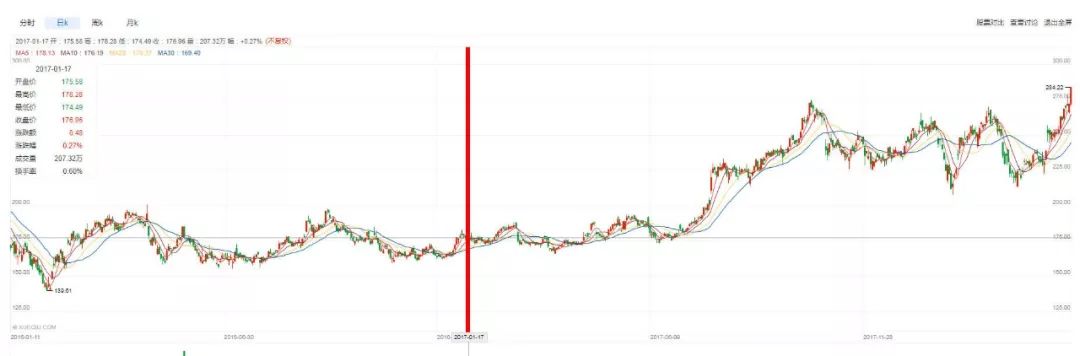 红线为陆奇加入百度的时间,右边为自他加入后百度迄今为止的股价走势