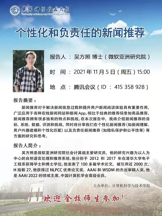微软亚研吴方照博士:个性化和负责人的新闻推荐