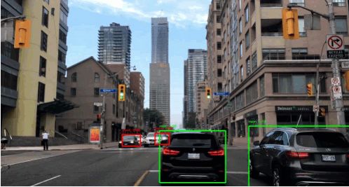 图 8: 汽车前后视角的实时深度学习目标检测