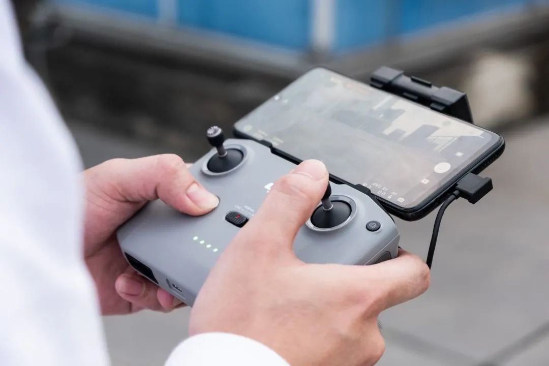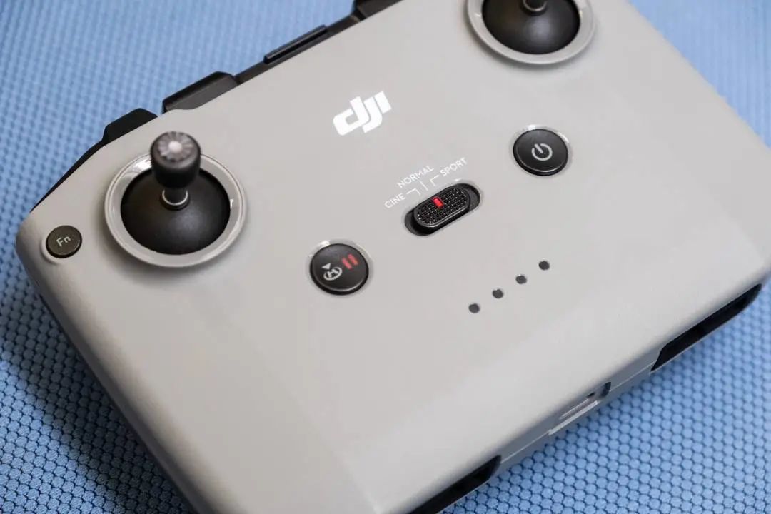 大疆对与遥控器也进行了升级,与 Mavic Air 2 的相同,主要是新增了「CINE」,「NORMAL」和「SPORT」模式的快速切换,飞行速度逐级增加,最高可达 58KM。手机放置在遥控器上方,通过弹力固定,比原本放在下方要更稳固一些。根据大疆公布,这款遥控器可以支撑连续4小时的使用,连接手机时,还可以给手机充电。