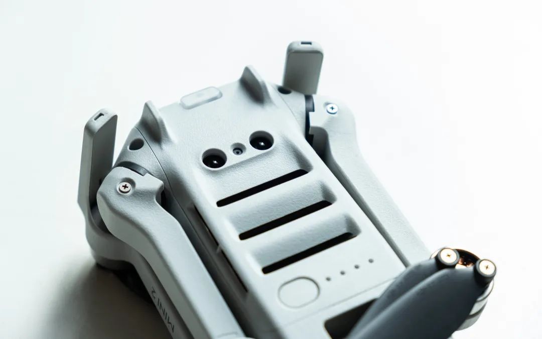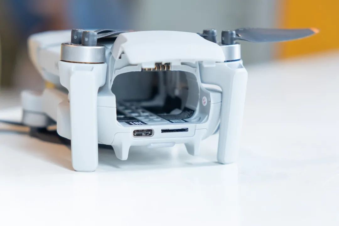 由外观来看,除了螺旋桨的色彩略有改变,还有升级到USB Type-C的接口,你几乎找不到它和上一代 Mavic Mini 的差别。略显可惜的是,这代 Mavic Mini 仍然没有前后避障,只有下方避障,在飞行的时候,尤其是在看不到机器本体的时候,需要多加谨慎。