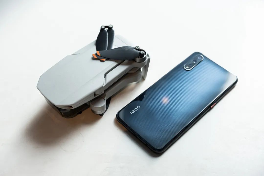 至于今天的主角 Mavic Mini,它的体积依旧小巧轻盈,重量控制在了 249g,拿起来比手机略重,折叠后和手机放在一起,看起来甚至还要小一些。也正因为它如此小巧便携,你甚至可以将其放入衣服的口袋。
