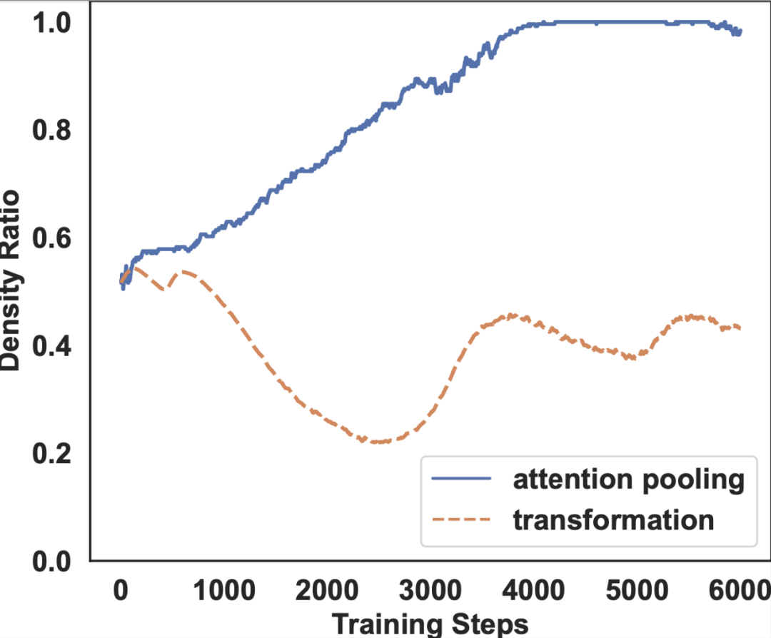 由于注意力池化权重参数保持了较高的密度比,作者推测在基于注意力的 readout 方法上进行更先进的架构设计将会更有利。