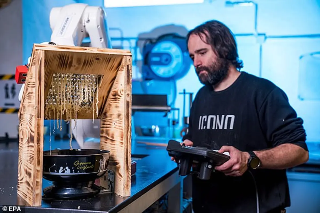 今年2月,瑞士科学家推出了Bouebot Robot来制作出完美的奶酪火锅。从倒入葡萄酒,到搅拌并撒一些胡椒粉,捡起一根金属钉、刺穿一块面包,然后放在支架上,这些行为的难度也都不低。