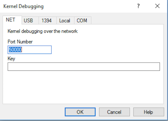 bcdedit /dbgsettings NET HOSTIP:<WINDBG_HOST> PORT:50000