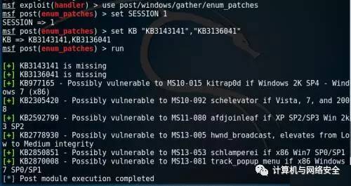 有一个Metasploit模块可以快速识别任何缺少补丁基于知识库的数量和具体的补丁这是Metasploit模块。